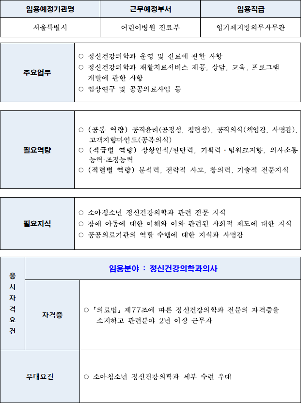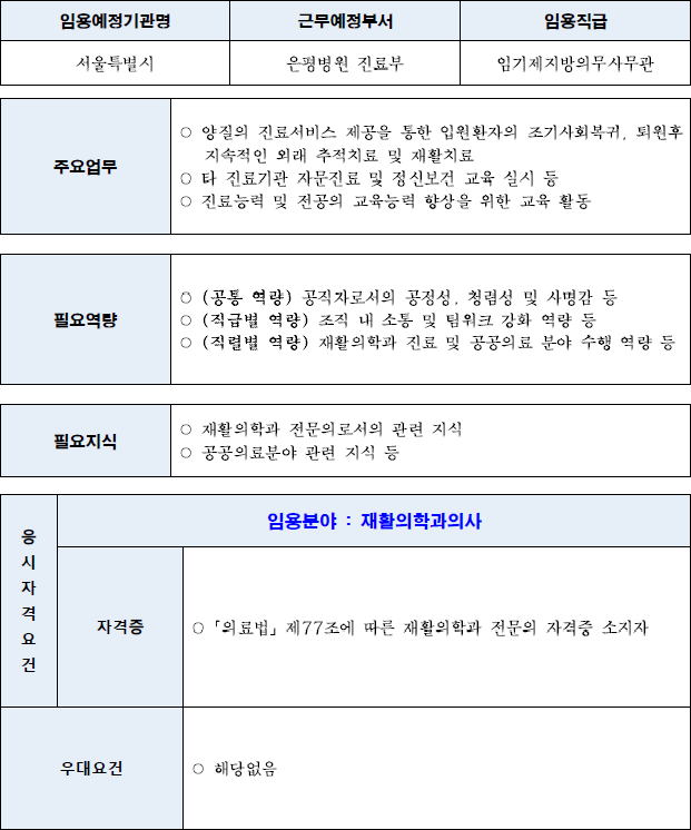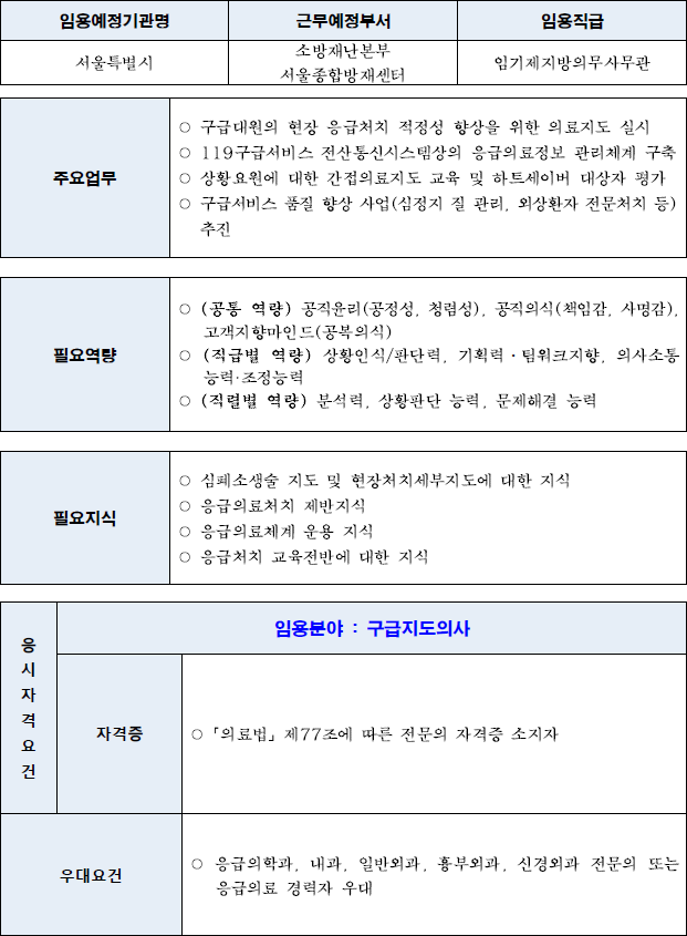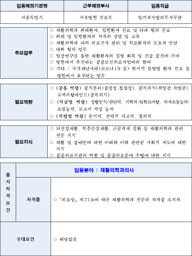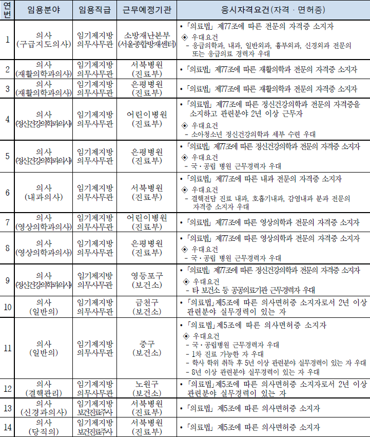 2022년 하반기 서울특별시 일반임기제공무원(의사) 경력경쟁임용시험 중입니다.